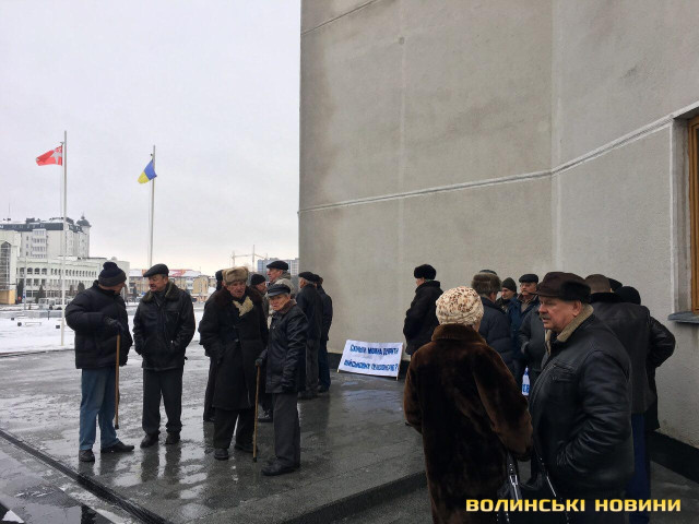 Під Волинською ОДА мітингують військові пенсіонери