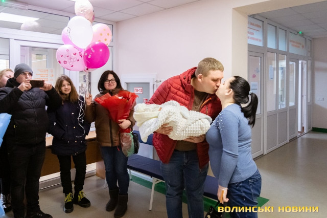 Біля входу у перинатальний центр – чоловік і жінка з букетом квітів.Це прадідусь і прабабуся чекають на виписку правнучки. 3 березня внучка Анастасія Риковська подарувала родині здоровеньку дівчинку вагою 3700 г.«Ми із села Цеперів Луцького району. У внучки почалися перейми, тому привезли до Луцька. Вдень привезли і на вечір кесарили. Хвилювалися за те, як відбудуться пологи в умовах війни, чи не доведеться народжувати у підвалі. Дівчинку назвали Мирославою, аби в Україні швидше настав мир», – розповідає прабабуся маленької Миросі Антоніна Кухар.Жінка похвалилася, що має вже п’ятьох внучок і одну правнучку.