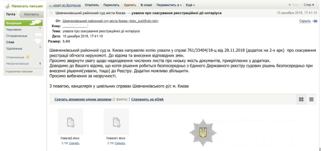 Повідомлення зі шкідливими додатками надходили начебто від імені державних установ, зокрема, судів різних інстанцій.