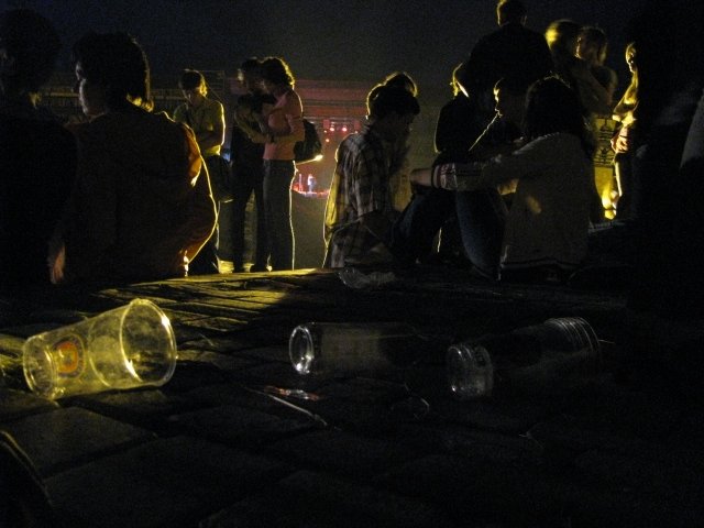Потрапити ж на феєрію ночі за 80 гривень могли не всі. Тому, аби зекономити, дехто з глядачів вилазив спочатку по валу, а потім по трубі на дах замку.