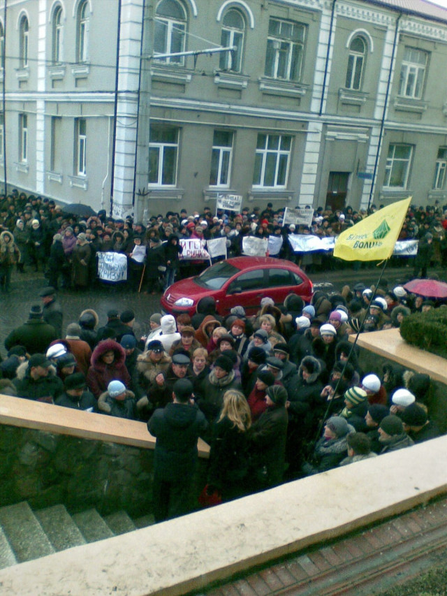 Підприємці, які торгують на Завокзальному та Центральному ринках Луцька, розгорнули чисельний мітинг під стінами міськради, протестуючи проти надання земельних ділянок на обох торговищах «АвтоПаркСервісу». Про це 23 грудня повідомляє репортер «Волинських Новин».