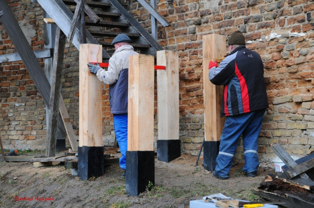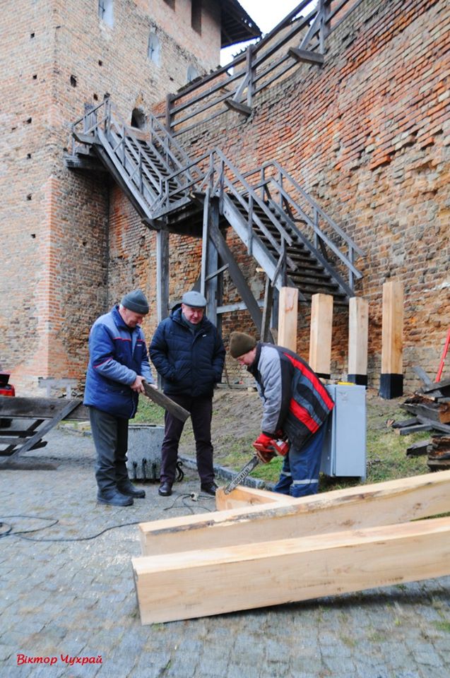 На території Луцького замку 1 лютого здійснюють роботи із заміни частини дерев'яних конструкцій сходів у Музей дзвонів, що у Владичій вежі.