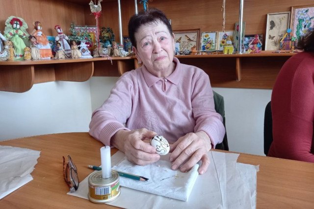 «Намагаюся їх долучити до таких арттерапевтичних занять, показати, яке є мистецтво саме в нас на Волині. Це допомагає, знімає напругу, ми тут спілкуємося, знайомимося, тут починаємо дружити», – каже Лариса Кусик.Найстаршій учасниці майстерки з писанкарства 82 роки. Галина переїхала до луцького пансіонату зі Слов’янська пів року тому. Жінка каже, що розписувати писанки спробувала вперше.