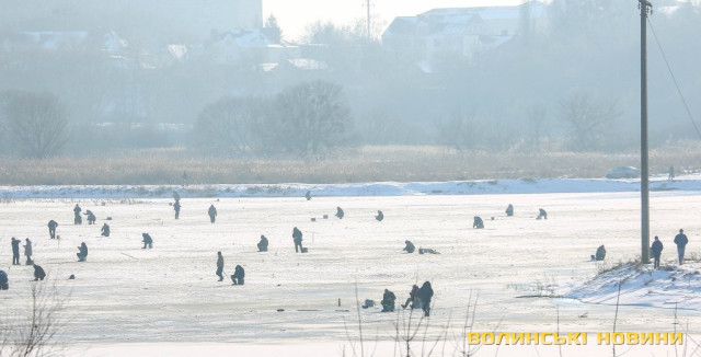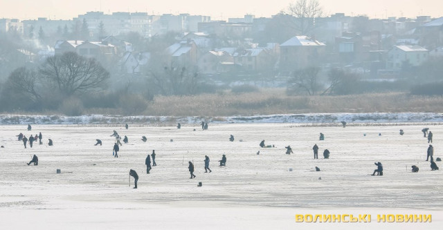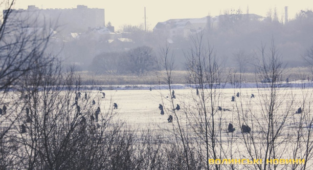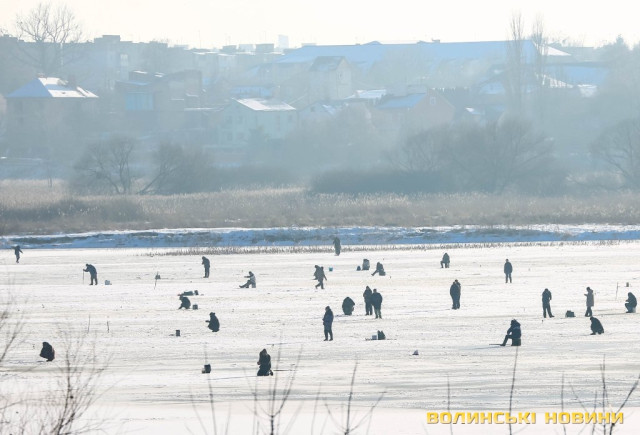 Попри доволі теплу погоду, крига на річці ще не скресла, тож десятки найзапекліших поціновувачів зимової риболовлі проводять цей вихідний за улюбленим хобі. З долини ріки відкриваються не закриті наразі листям дерев чарівні краєвиди Старого міста з вкритими снігом дахами храмів. Сонячний суботній день у січневому Луцьку – у фоторепортажі Інформаційного агентства Волинські Новини.