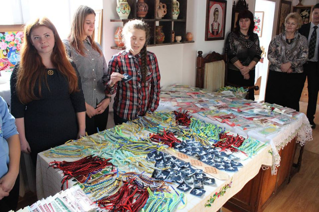 Студенти Володимир-Волинського педагогічного коледжу імені А.Ю. Кримського виготовили більш півтори тисячі патріотичних браслетів, вишитих конвертів, шевронів та іншої сувенірної продукції для бійців АТО. Про це інформує директор навчального закладу в мережі.
