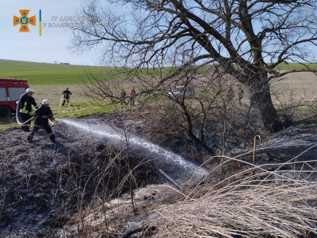 Суха трава горіла на вулиці Карпенка-Карого в Луцьку та біля села Залужне Локачинської громади. Біля села Шистів Зимненської територіальної громади горів очерет на площі 2,5 га. На Ковельщині поблизу сіл Вишнів, Селець та Замшани горіли чагарники й суха трава.