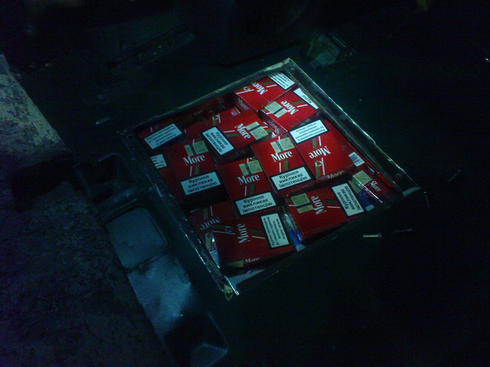 Під час спільного поглибленого огляду було виявлено під сидінням автомобіля в підлозі вирізаний люк, який давав можливість доступу до простору між підлогою та дном автомобіля висотою приблизно 40 сантиметрів, куди винахідливий білорус умудрився запакувати 1730 пачок цигарок «MORE» та «LM».