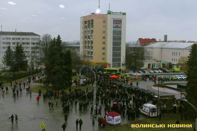 Більше доби Луцьк не знав спокою: спочатку в місті з’явилось 15 білбордів «Зустрінемо Україну без пороху», а за день до візиту Петра Порошенка невідомі в центрі міста розвісили 30-метровий банер «Ти став президентом на крові хлопців 51 ОМБР». Після цього – день очікування на президента в оточеному правоохоронцями центрі міста. Але гарант, чомусь, так і не приїхав – його борт приземлився в Луцьку ввечері і президент спішно поїхав до Ковеля, де вже півтори години на холоді його чекала заздалегідь звезена автобусами масовка.