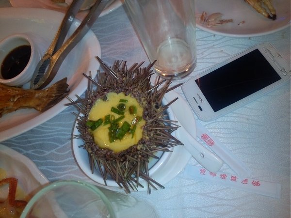 Дуже боялася місцевої кухні. Набрала з собою, про всяк випадок, купу таблеток. Чомусь думалося, що готують вони настільки екзотичні страви, що мій шлунок такого нокдауну не витримає. Однак побоювання виявилися марними. Китайці, в основному, харчуються морепродуктами, ну а хто полюбляє м’ясо: телятину, яловичину чи свинину – теж не буде ображеним. Я куштувала все, чого немає в нас. Наприклад в одному із ресторанів мені запропонували напій, де ще ворушиться змія. Там же можна було вибрати із акваріумів вподобані рибу, креветки чи молюски. При тобі їх зважують і тут же готують. Де б іще мала нагоду спробувати на смак морського їжака.