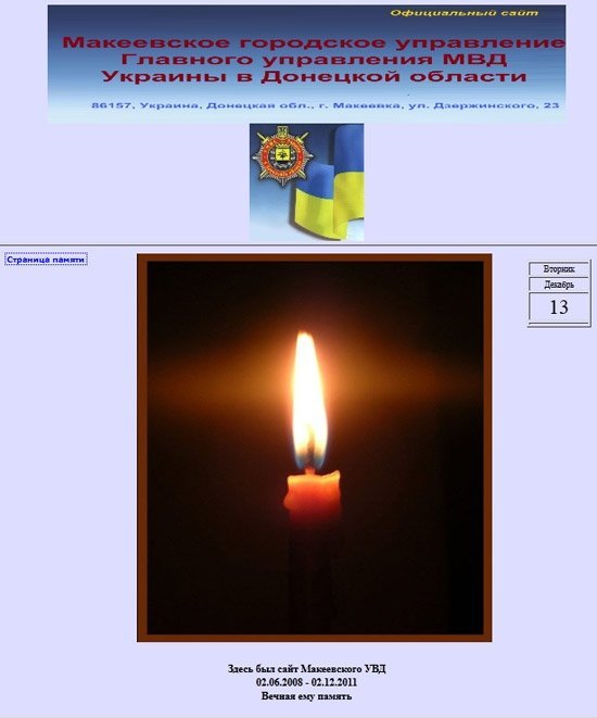 На сторінці було розміщено фото палаючої свічки, під якою напис: «Тут був сайт Макіївського УВС 02.06.2008-02.12.2011. Вічна йому пам’ять».
