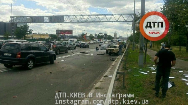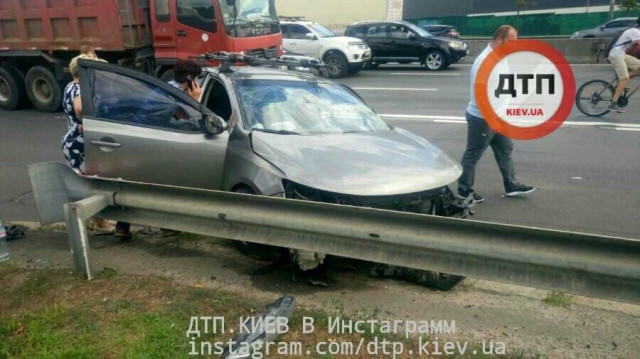 Також повідомляється що сірий Mitsubishi Lancer їхав зі швидкістю близько 130-140 км. Уточнюється, що автомобіль «петляючи, зачепив» Toyota Camry і і при з'їзді з Московського мосту в сторону метро «Петрівка» біля зупинки громадського транспорту його різко розгорнуло поперек і він вдарився у КІА.