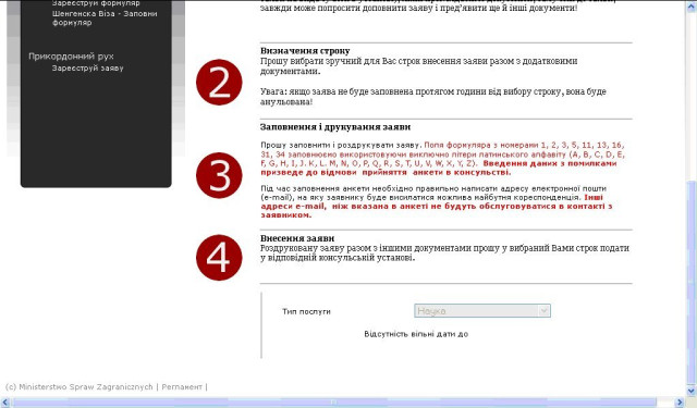Оскільки Олександр робив візу кілька місяців тому, ми вирішили перевірити, як ситуація виглядає сьогодні. Журналіст зателефонував до консульства та запитав про можливість подати документи. Виявилось, що тепер це можливо за умови попередньої реєстрації в електронній системі. Тепер все чесно? А от і ні. Виявилось, що зареєструватися на подачу до консульства таки неможливо, бо в системі немає вільних місць. Ми цього й очікували. А тому виникло цілком логічне питання: а коли будуть? Ось тут починається найцікавіше. Ввівши в електрону форму свої дані та вибравши мету подорожі «культура», отримуємо ось таке: