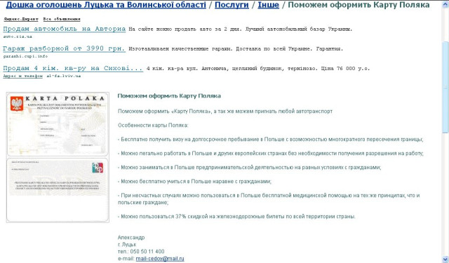 Журналіст CorruptUA написав на кілька адрес, аби дізнатись розцінки та умови легкого отримання документів. Галина, яка спеціалізується на запрошеннях на роботу написала, що: «Запрошення справжнє , як поміч домова від воєводи. Можу зробити за 4-5 тижнів, від подачі документів. Ціна 1100 злотих». Процедура проста: пересилаєте Галині документи, платите частину суми, отримуєте запрошення, розраховуєтесь, робите візу, їдете до Польщі. Ось тут і почнеться найцікавіше, бо зовсім не факт, що пропустять на кордоні. Живий приклад – на власні очі побачена історія з заробітчанином, який їхав на роботу із Луцька до Вроцлава по купленому запрошенню. Документ викликав підозру у польського митника, який тут же зателефонував на підприємство, чиї реквізити там були зазначені та поцікавився, чи насправді вони видавали це запрошення. На другому кінці дроту відповіли: «На даний час працівників не потребуємо». Заробітчанина зняли з автобуса та відправили додому.