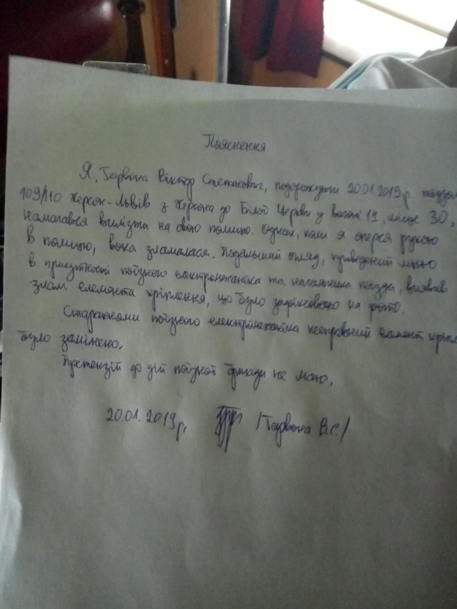 Також Гарвона зазначив, що у присутності начальника поїзда та електромеханіка було складено акт та пояснення щодо інциденту.