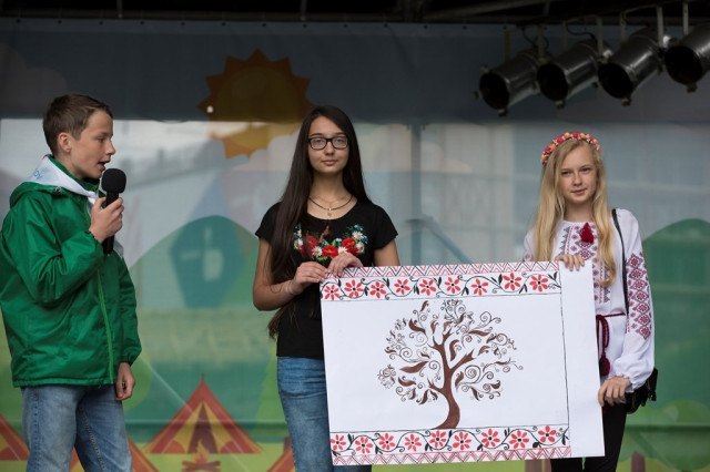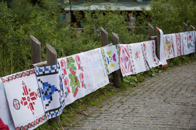 Усі 28 загонів табору «Артек-Буковель» готували спільний флешмоб – мальовано-вишиваний рушник. Імітуючи українську вишивку, діти намагалися презентувати