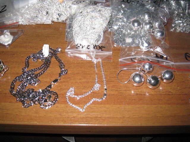 У сумці мандрівниці оглядова група знайшла обмотані скотчем поліетиленові пакети із ланцюжками, каблучками, хрестиками, підвісками, браслетами та сережками з металів білого, сірого та жовтого кольорів. Деякі з прикрас були інкрустовані кольоровими камінцями.