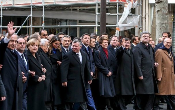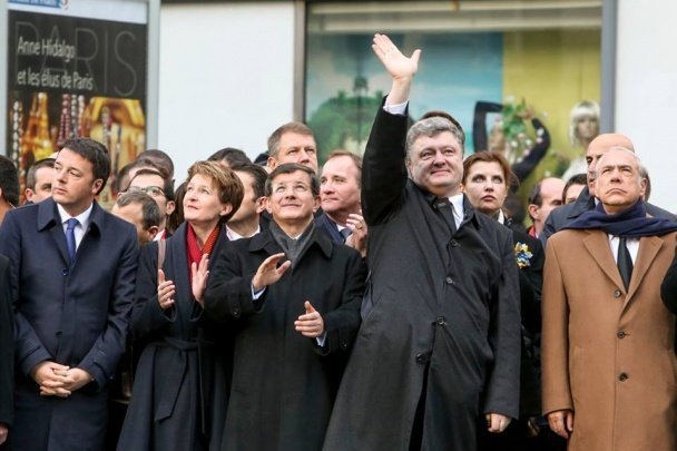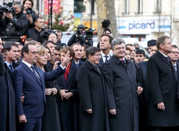 "ПОРОШЕНКО НА МАРШІ ЄДНОСТІ ЙШОВ У ПЕРШОМУ РЯДІ СВІТОВИХ ЛІДЕРІВ" Правда там не было руководителей ни США, ни Китая, ни России.