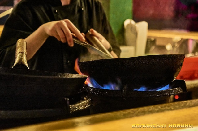Головна на кухні, де готують тайські страви, – кругла глибока сковорідка з опуклим дном, що називається вок, а ще – газова горілка, яка подає під дуже великим тиском газ. Тобто температура там – більш як 1000 градусів. Віталій каже, що страви, приготовані у воку, краще зберігають смак і мають більше вітамінів.