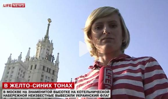 Верхолази зняли український прапор зі шпиля сталінської висотки на Котельній набережній в центрі Москви. Як повідомило джерело в екстрених службах Москви, прапор зняли в 10:05 (9:05 за Києвом). Таким чином, прапор України провисів на висотці близько трьох годин.