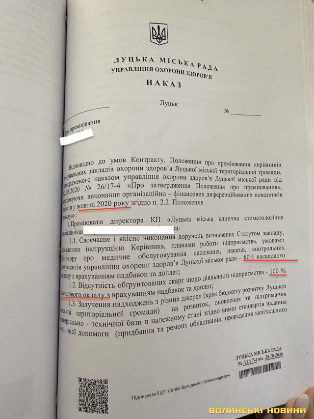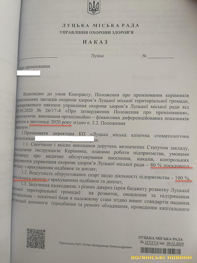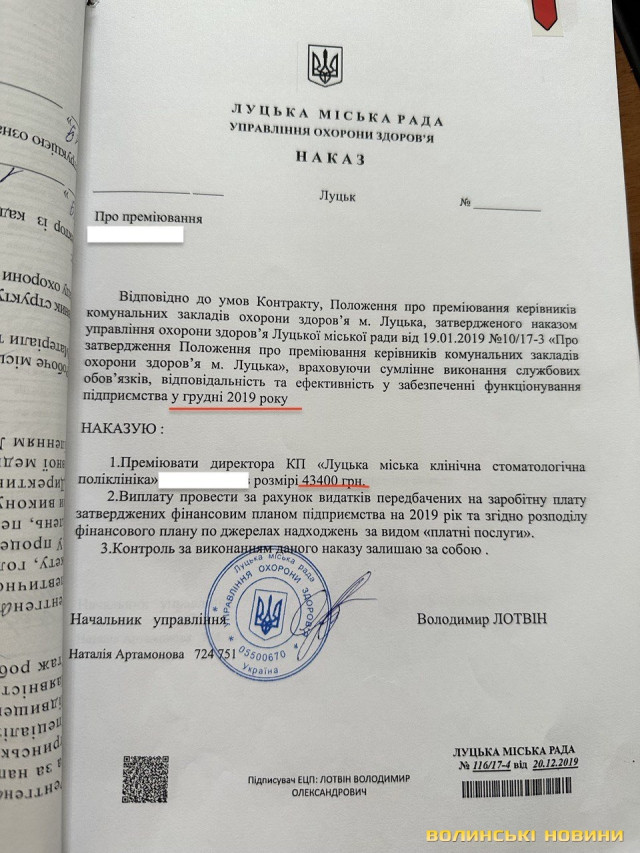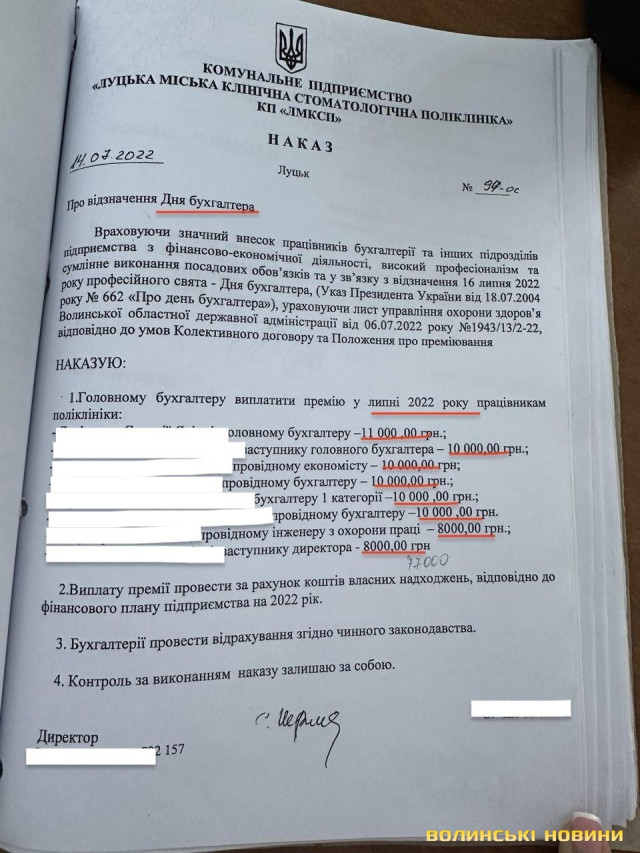 Попереднє керівництво комунального підприємства «Луцька міська клінічна стоматологічна поліклініка» отримувало захмарні премії щомісяця та з нагоди будь-яких свят, як-от Новий рік чи День бухгалтера. Водночас у ковідні березень-квітень 2020 року чимало працівників стоматполіклініки залишилися взагалі без зарплати.