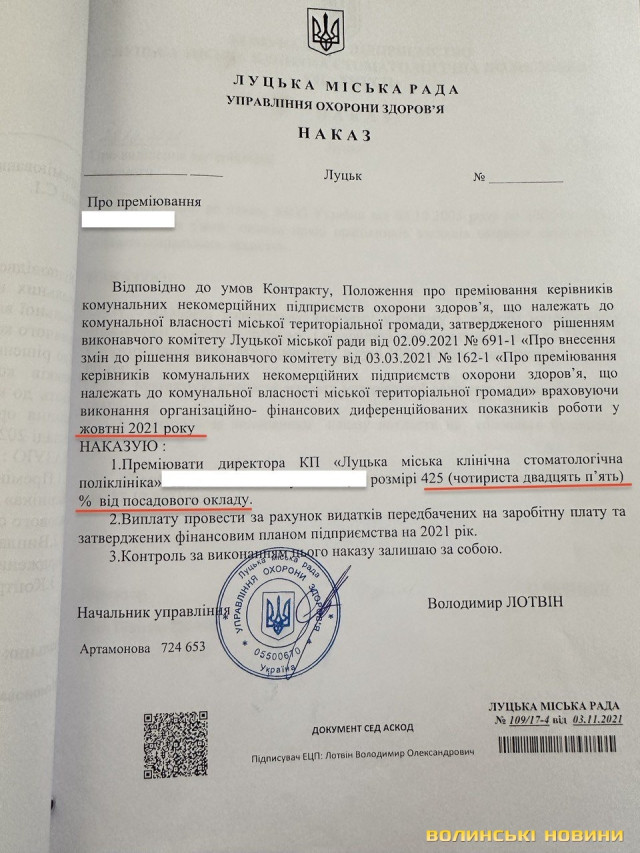 Наказ про преміювання підписував начальник міськздороввідділу. Напевно мав з того відсоток