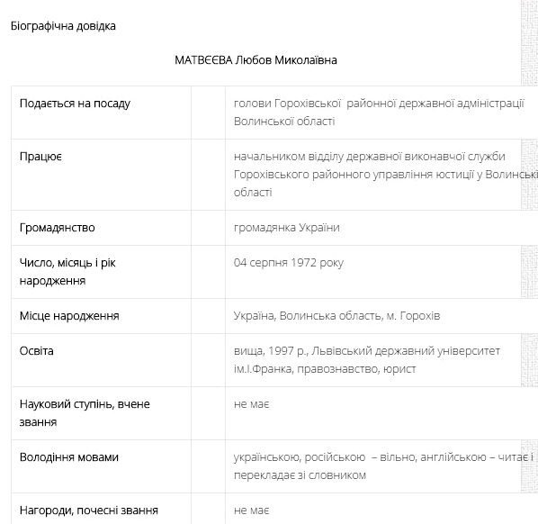 Голова облдержадміністрації Володимир Гунчик сьогодні, 3 квітня 2015-го, офіційно представив громаді Горохівського краю Любов Матвєєву як голову райдержадміністрації.