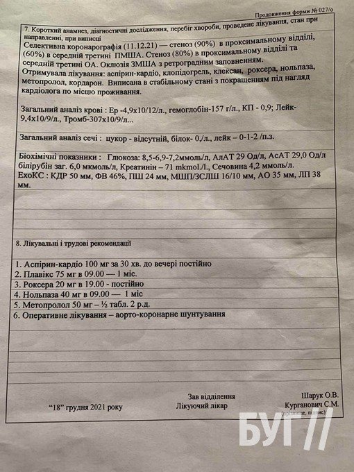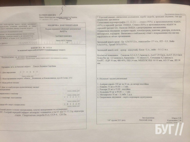 Операцію призначили на 20 січня, адже Людмила була дуже ослабленою та потребувала реабілітації, пише БУГ.
