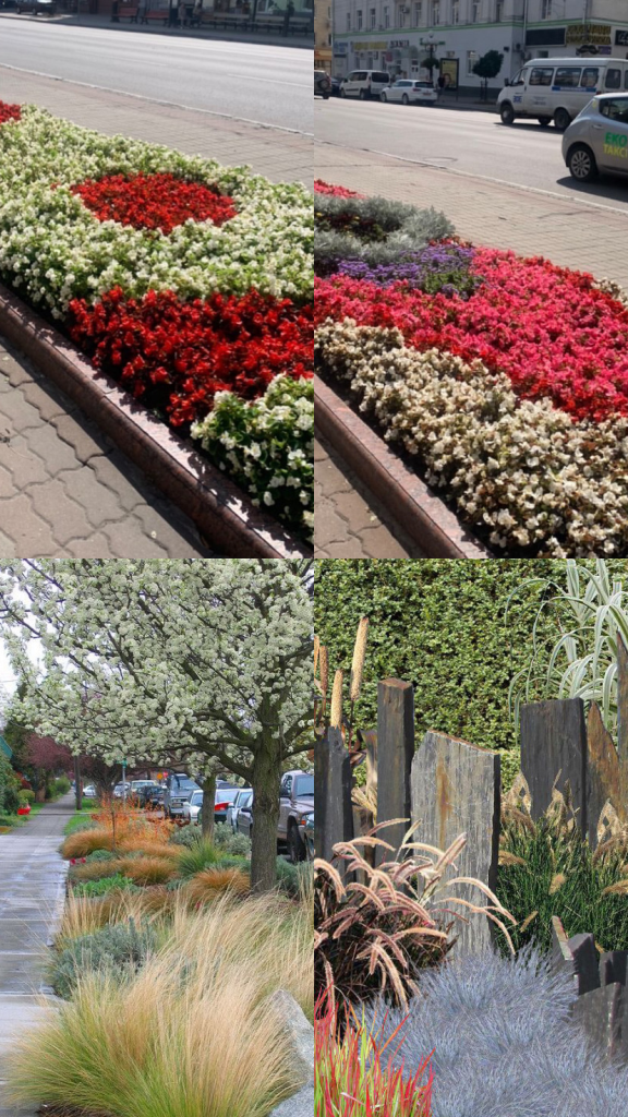 Лаванда, шавлія, чебрець, ромашка, деревій, безсмертник, міскантус, костриця, ковила… все це й так біля хат садять. Вже ж і безвіз є, щоб власними очима, або в інтернеті глянути можна. Давно засаджують міста в такий спосіб: і гарно, і шуму/пилу від дороги менше, і в спеку легше. Чого так триматися за радянські відкритки?