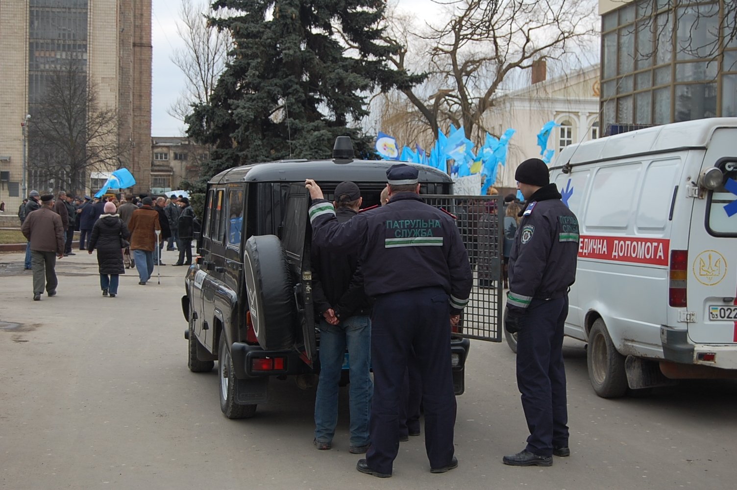 Цікаво, що поблизу мітингу міліціонери затримали підлітка. Невідомо, був він учасником протестного заходу чи ні, але його відвезли на міліцейській машині у невідомому напрямку.