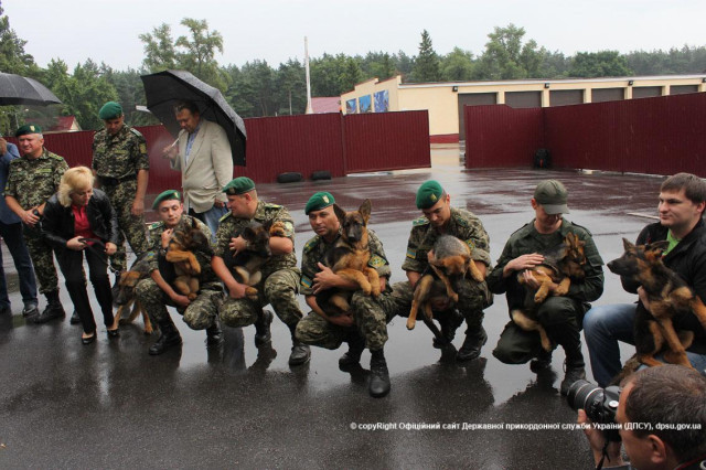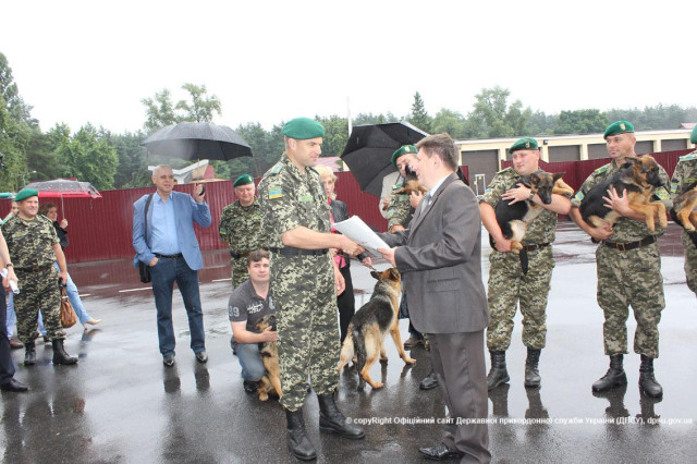 Перші 10 цуценят породи «німецька вівчарка» передали кінологам-прикордонникам 10 липня в Окремій комендатурі охорони і забезпечення Держприкордонслужби, що в Бортничах. У заході взяли участь президент громадської організації Георгій Оніщенко, який і привіз майбутніх чотирилапих охоронців кордону, начальник кінологічного відділу Адміністрації Держприкордонслужби Михайло Вдовенко та представник Кінологічного навчального центру прикордонного відомства Юрій Орищин, - інформують у прес-службі організації.