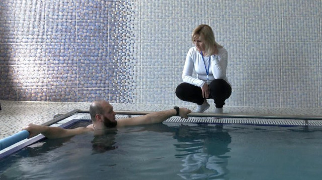 Водну терапію після двох операцій на коліні проходить у Луцьку боєць роти особливого призначення «Світязь» Тарас. Травму, каже, отримав під час служби в Маріуполі. За кілька днів реабілітації планує повернутися у стрій.«Роблю вправи на коліно, щоб розроблялася зв'язка, щоб воно нормально функціонувало, щоб можна було ходити, бігати. Я сюди прийшов на милицях обох: ледь ходив, а зараз уже без них. Я думаю, що тиждень – та й на службу. Тут відновлюють класно», – зазначає боєць.