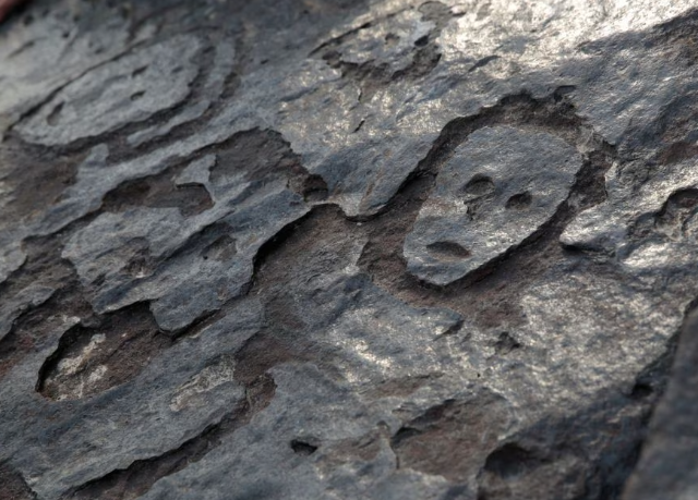 Людські обличчя, висічені на камені близько 2000 років тому, стало видно на скелястому виступі вздовж річки Амазонки.