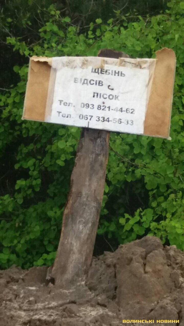На Волині виявили незаконний видобуток піску на площі близько гектара