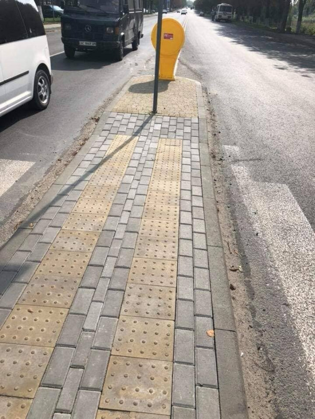 Тож усюди, де відбуваються ремонтні роботи, застосовують пониження бордюрного каменю та вкладання тактильної плитки.