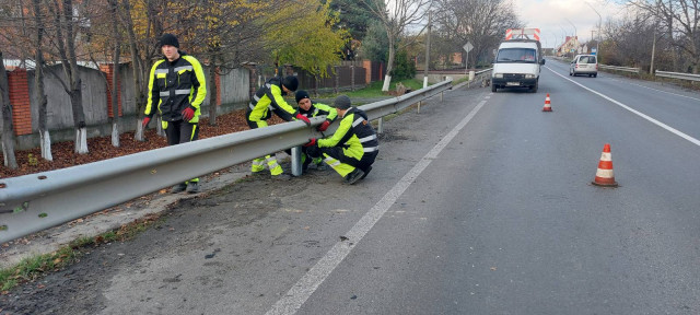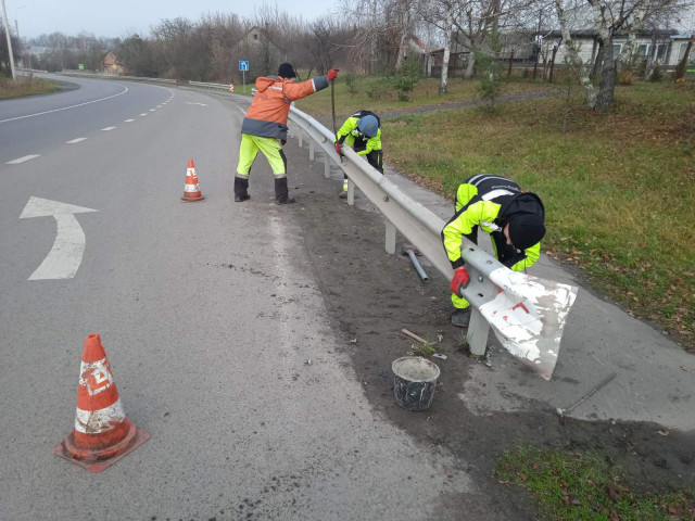 Зокрема, ремонтують бар’єрне огородження, пошкоджене під час дорожньо-транспортних пригод, та відновлюють інші елементи організації дорожнього руху: дорожні знаки, сигнальні стовпці, розмітку.