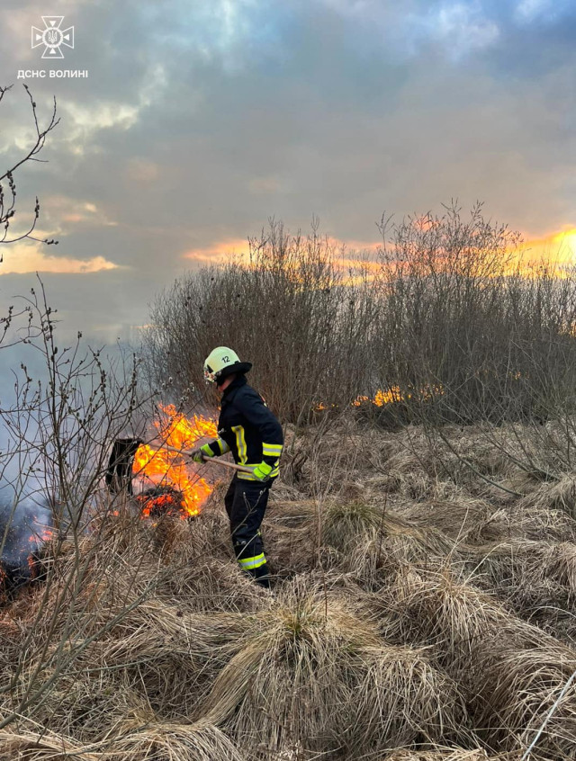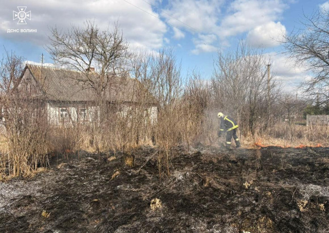 У Володимирському районі займання сталися в селі Мовники, між населеними пунктами Березовичі – Яковичі та поблизу села Конюхи. У Камінь-Каширському районі горіло біля села Судче.Вогонь знищував суху траву, чагарники, сміття, а в окремих випадках і торф. У селі Мовники внаслідок пожежі пошкоджено дерев’яну господарську споруду.