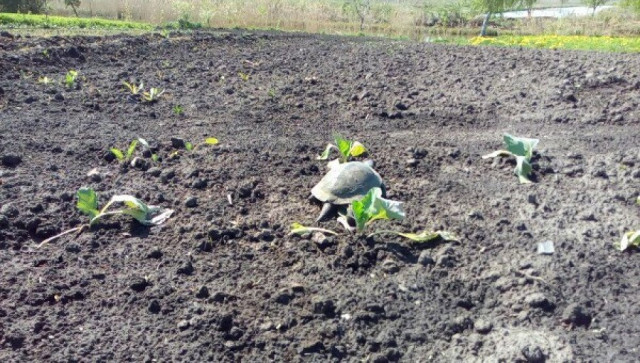 У селі Новостав Горохівського району - цікава знахідка. Люди, які живуть поблизу ставу помітили на своїх обійстях черепаху.