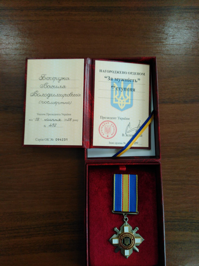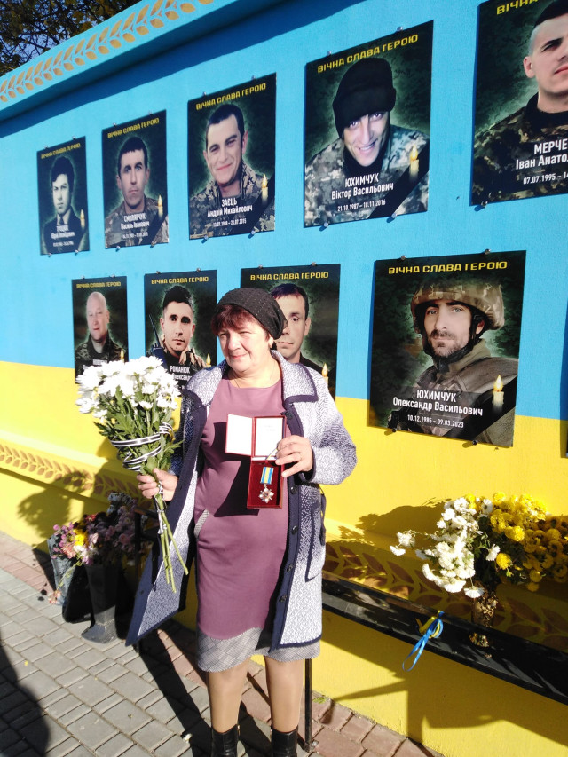 Нагороди передали мамi Олександра Юхимчук Свiтланi Iванiвнi та дружинi Василя Бекерук Людмилi Василiвнi.