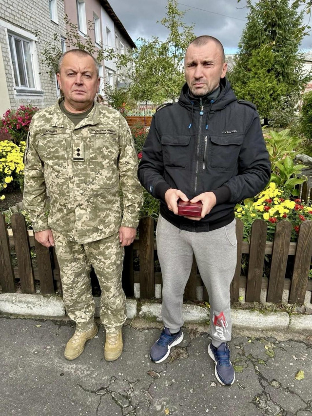 Високі державні нагороди рідним загиблих Героїв вручив заступник начальника Камінь-Каширського районного територіального центру комплектування та соціальної підтримки підполковник Костянтин Борбич.