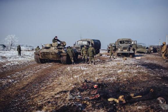 Нагадаємо, вчора, 17 лютого, українська армія біля Логвиного потужним ударом знищила велику колону бронетехніки сепаратистів чисельністю до 40 одиниць.
