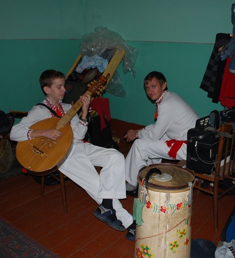Хлопці з дитячого ансамблю «Байда» тренуються «на розслабоні». Схоже, впевнені у вдалому виступі.