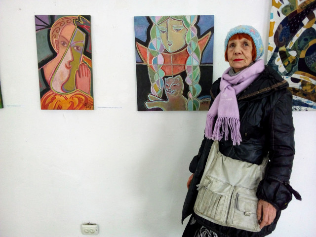 Оптимістична палітра нових робіт славетної Олени Бурдаш «Глибина», «Наповнення», «Інстинкт», «У мудрого господаря і кінь мудрий» вселяє радість знайденої у довгих й непростих пошуках гармонії мудрості, прийняття людиною свого земного досвіду, потреби у постійному духовному зростанні.Олена Бурдаш біля своїх робіт