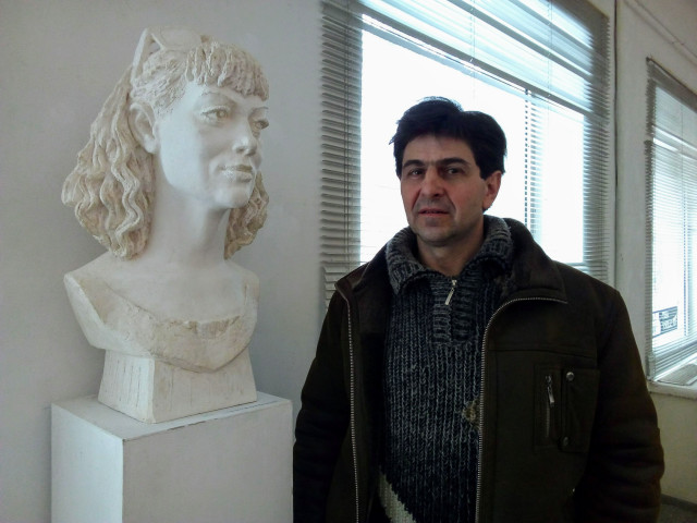 В інтер’єрі виставки представлений скульптурний портрет молодої жінки «Незнайомка». Його автор, знаний скульптор з Любомльщини Олександр Грицай, розповів історію створення: «В кожної моєї роботи є якась реальна історія, реальна людина. Подія, в результаті якої «народилася» ця робота, сталася минулого року. На запрошення знайомого письменника я прийшов на презентацію його книжки, де познайомився з Вікторією. Перше враження виявилося вирішальним. Вікторія привабила мене своєю красою, жіночою енергетикою. Згодом вона згодилася позувати для скульптурного портрета. Робота відбувалася з натури й у мене зайняла приблизно 15 годин».О.Грицай і «Незнайомка»