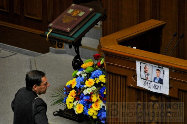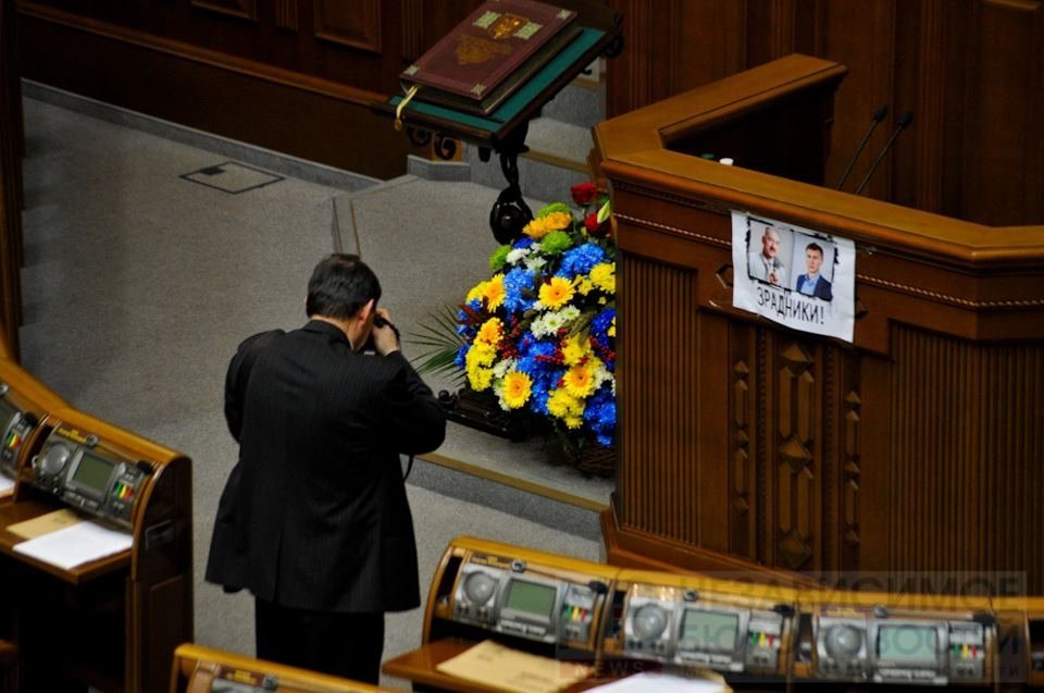Опозиція зустріла представників уряду криками: «Ганьба!» Також в сесійній залі ВР ‒ Президент України 1991-1994 років Леонід Кравчук, судді Конституційного Суду, генеральний прокурор України Віктор Пшонка.
