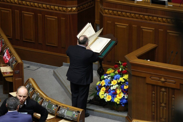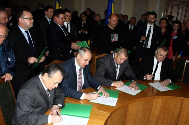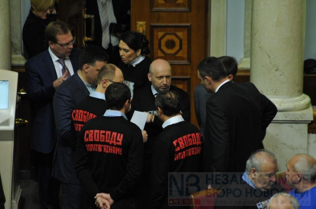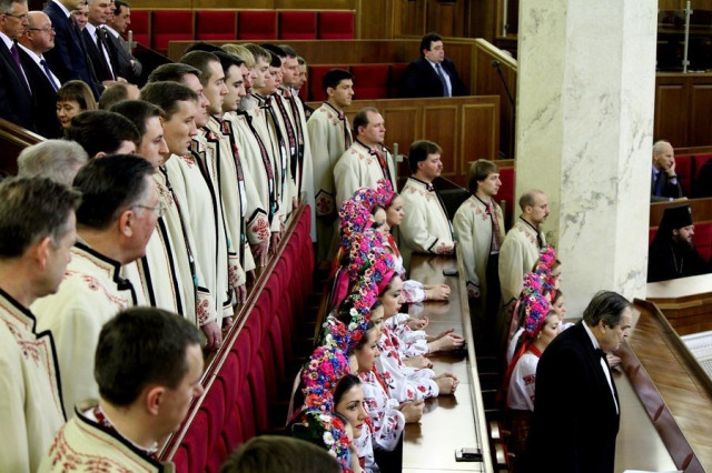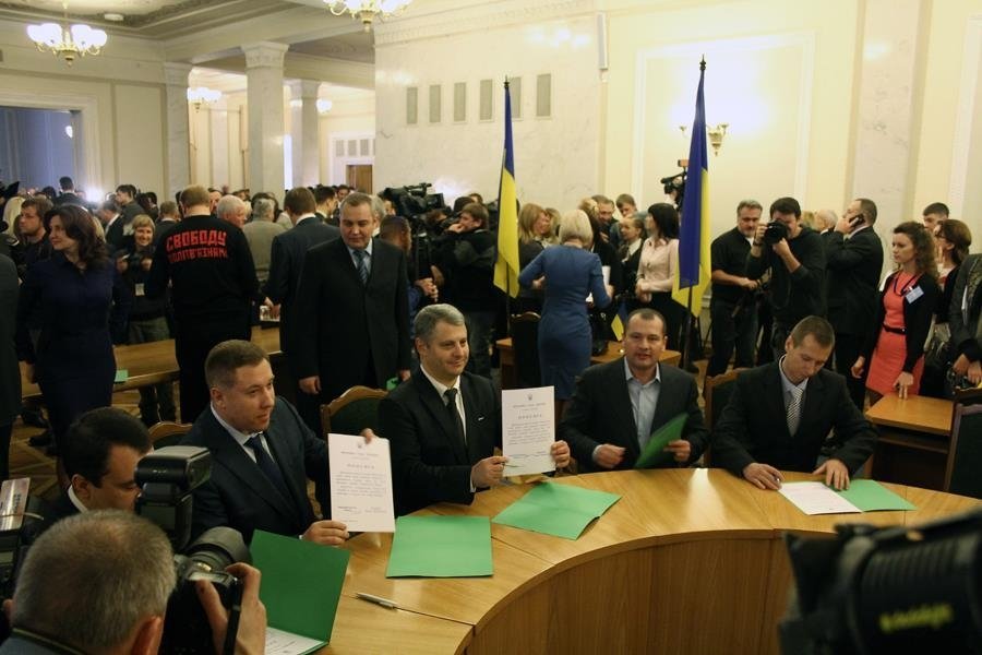 Представники ВО «Свобода» ‒ у вишиванках. На урочистому засіданні присутній виконуючий обов’язки Прем’єр-міністра України Микола Азаров та члени уряду.