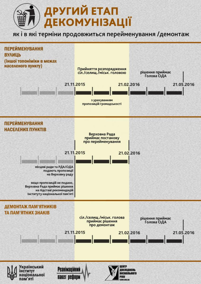 Попереду ще півроку, щоби декомунізаційні закони реалізувати повною мірою (детальніше механізм див. у доданій інфографіці).
