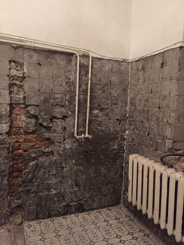 Нарешті розпочалися ремонтні роботи у Луцькому гарнізонному військовому госпіталі. Наразі здійснили демонтаж плитки в туалеті та душовій.