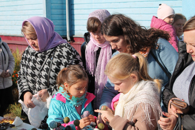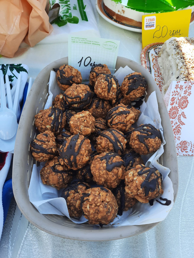 На подвір'ї храму дітлахи співали патріотичні пісні.Ятки були заповнені солодощами, які не лише смакували присутнім, а й мали естетичний вигляд та переважно патріотичне виконання з використанням елементів національної символіки.Придбати можна було також патріотичні браслети, магніти та живі квіти.