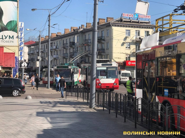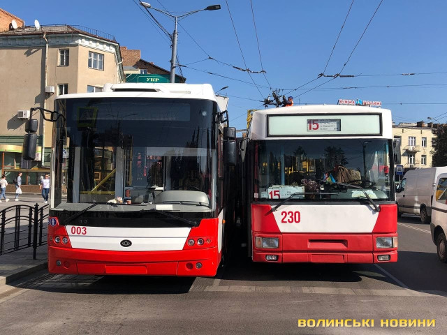 Рух ускладнений: у центрі Луцька два тролейбуси майже перекрили дорогу. Фото
