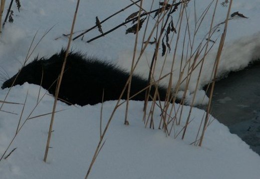 Аби побачити гризуна вживу, довелося заховатися в засідку. Тварини живуть лише в тих водоймах, де є проточна вода. Зазвичай тварини вилазять на берег, коли починає темніти або пізно вночі. Почало смеркати - і чорний бобрик виліз з джерела.